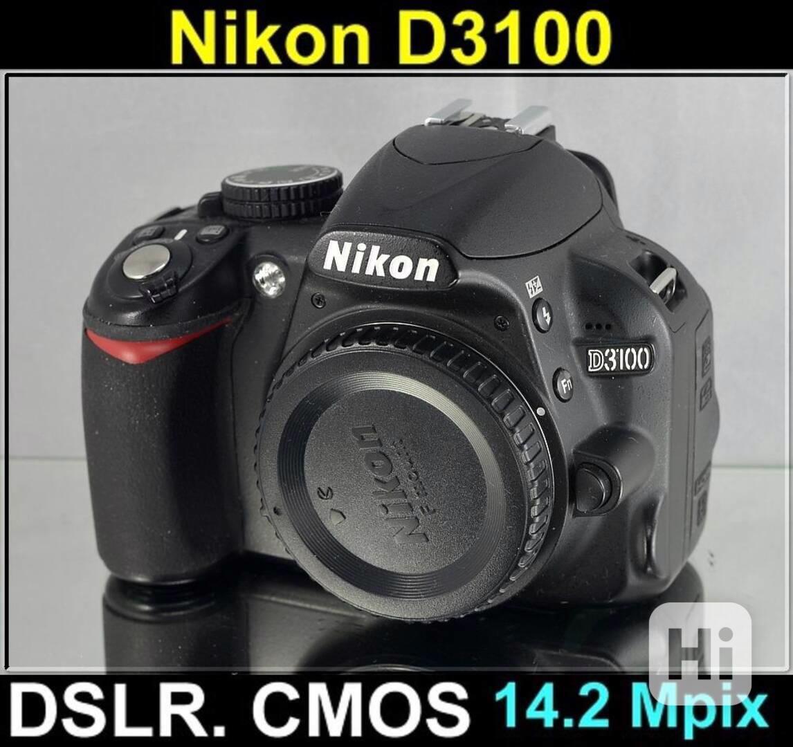 D3100 je nástupcem oblíbeného modelu Nikon D3000. Nový Nikon D3100 nabízí 11 bodový autofokus s 3D sledováním objektu, 7.5cm LCD displej, CCD snímač o rozlišení 14.2MPix, čištění obrazového snímače, natáčení Full HD videa, režim Živého náhledu, dobrou ergonomii a celou řadu dalších funkcí.