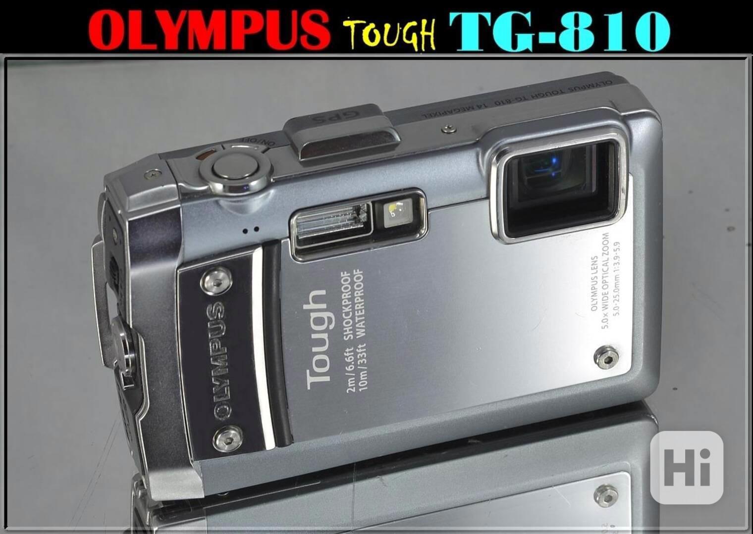 Nejodolnější z odolných fotoaparátů Olympus TOUGH Olympus TG-810 přináší vynikající kvalitu fotografii 14Mpix, 5× širokoúhlý optický zoom, 3.0" HyperCrystal III LCD. Je vodotěsný do 10m, odolný vůči pádu ze 2m, zatížení do 100kg a mrazuvzdorný do –10°C. Disponuje duální stabilizací obrazu, 3D foto, magickými filtry a dalšími zajímavými režimy.