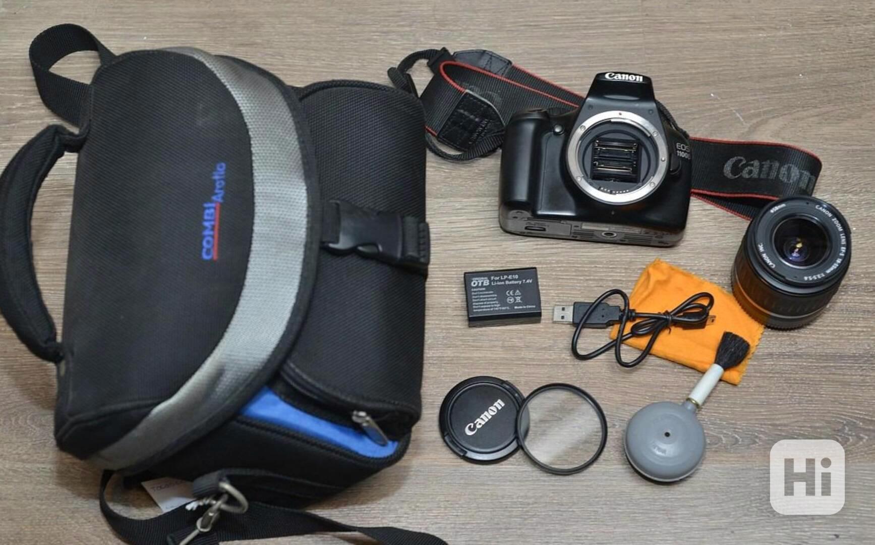 Canon EOS 1100D je digitální zrcadlovka vhodná pro nadšené amatérské fotografy. Má 9 bodový autofokus, natáčí HD video, má CMOS snímač s rozlišením 12Mpix, citlivost ISO 100-6400, 6.75cm LCD displej a vestavěný interaktivní pomocník Basic+.