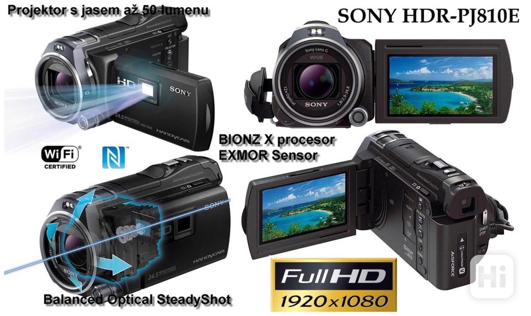 Videokamera SONY HDR-PJ810E je kamera vyšší třídy s dnes už hodně opomíjeným elektronickým hledáčkem, který má své nezastupitelné místo pro přesné zaměření záběru a to i za přímého slunečního svitu, kdy i nejkvalitnější displeje oproti hledáčkům významně ztrácejí na čitelnosti. Uvnitř této vysoce výkonné videokamery Full HD se snadným ovládáním je projektor s jasem až 50 lumenů, který promítne videa na jakoukoli blízkou plochu. Je to chytrý a zábavný způsob, jak všechny zapojit do sdílení akce i když nemáte zdroj energie či podmínky pro televizor či počítač. Videokamera je napěchovaná tou nejnovější technikou, která jí propůjčuje mimořádný výkon a špičkovou kvalitu obrazu. Navíc se může pochlubit spoustou užitečných funkcí a snadným ovládáním, kterého se nezalekne ani méně zkušený kameraman.