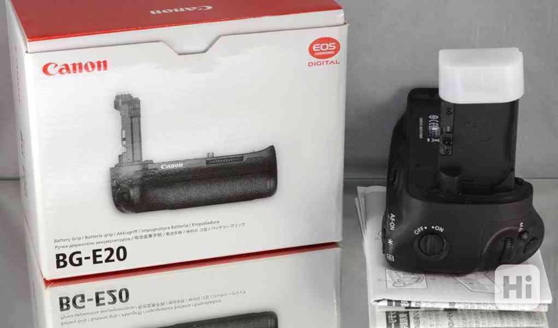 Součástí aukce je: grip Canon BG-E20, Držák na LP-E6 v originál krabici.